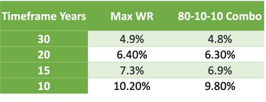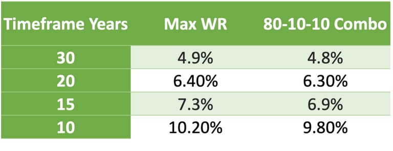 Optimal Asset Allocation and Max Withdrawal Rates possible for various retirement timeframes
