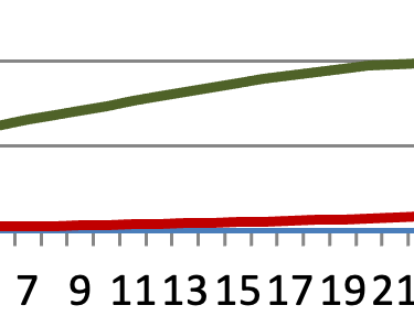 Fig. 3 refers to such a condition. Note that the Green line (Corpus) swings up and never comes down.